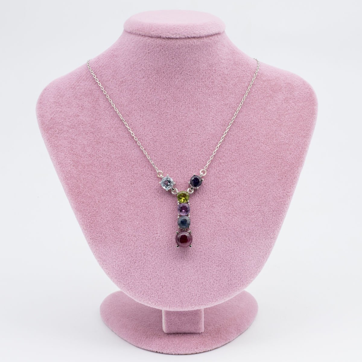 Yakut Safir Ametist Zeberced Topaz Kolye 925 Ayar Gümüş